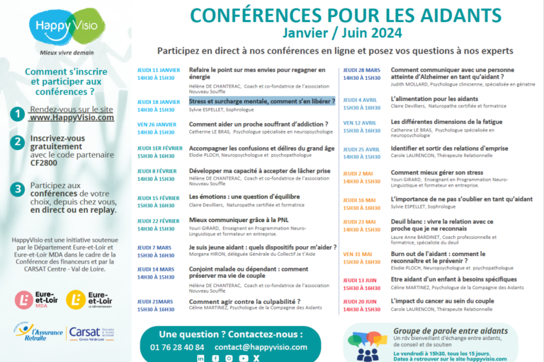 Programme des activités Happy Visio à destination des aidants et séniors en 2024
