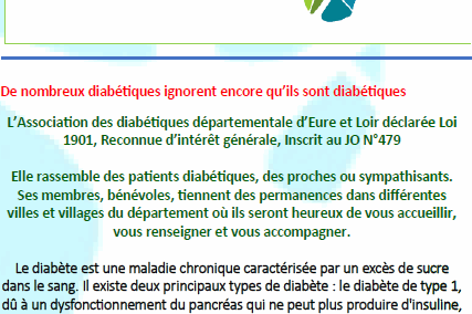 L’ Association des Diabétiques Départementale d’Eure-et-Loir, vient d’être créée, elle…