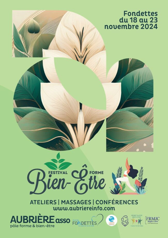 L’Aubrière organise la deuxième édition du festival Forme, bien-être et santé, à Fondettes du 18 au 23 novembre avec un programme riche et varié pendant une semaine : séances sport santé, ateliers, animations, conférences et massages. Billetterie et inscription sur www.aubriereinfo.com Renseignements : jcormery@aubriere-asso.com | 02.47.42.04.25