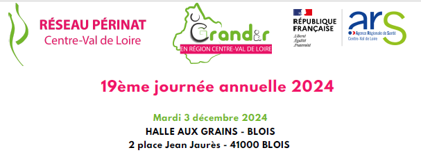 Les réseaux Périnat et Grandir en région Centre-Val de Loire organisent leur 19ème Journée Annuelle de périnatalité : Mardi 3 Décembre 2024 à la Halle aux Grains de BLOIS avec pour thème Sécurité et Qualité en périnatalité. Cette journée est ouverte à l’ensemble des professionnels des Réseaux Périnat et Grandir en région Centre-Val de Loire. Plus d’information : secretariat.perinatcvl@chu-tours.fr secretariat-grandir@chu-tours.fr http://www.perinatalite-centre.fr/