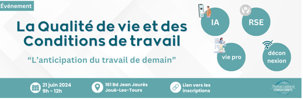 Conscients de votre intérêt pour ces sujets et leurs enjeux, le cabinet Thomas Legrand Consultants vous propose de participer à cette rencontre le vendredi 21 juin de 9h à 12h dans les locaux du cabinet 161 Bd Jean Jaurès, 37300 Joué-lès-Tours Nous échangerons autour des impacts des thématiques suivantes sur la QVCT : L’Intelligence Artificielle (IA)…