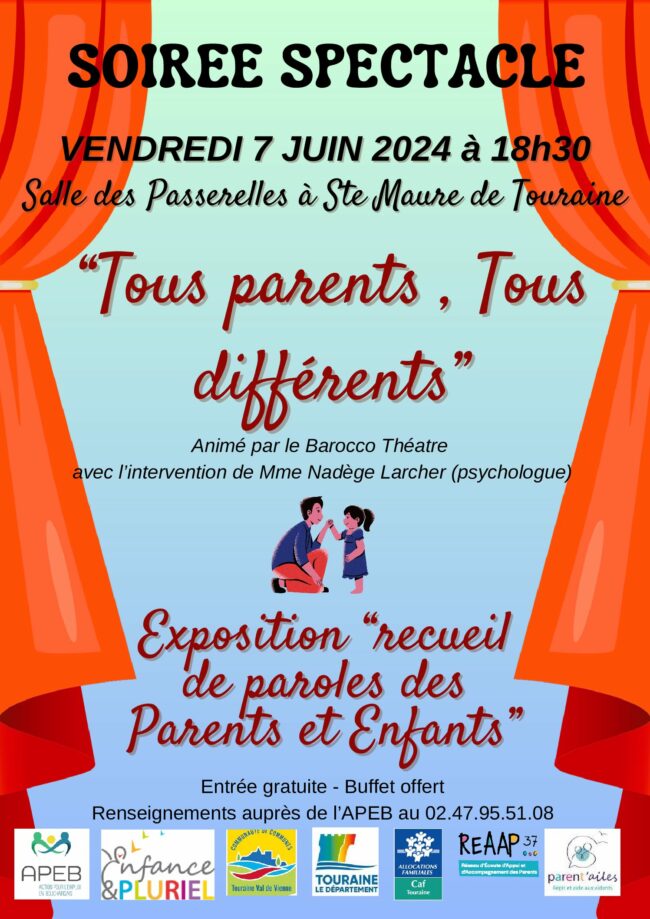 Dans le cadre du REAAP de la Communauté de commune du Val de Vienne, l’APEB en partenariat avec le Dispositif Parent’Ailes /Pôle Ressource Handicap37 porté par l’association Enfance et Pluriel, organise un théâtre-forum intitulé « Tous parents, tous différents ». Cet évènement aura lieu vendredi 7 juin à 18h30 aux Passerelles à Ste Maure de Touraine,…