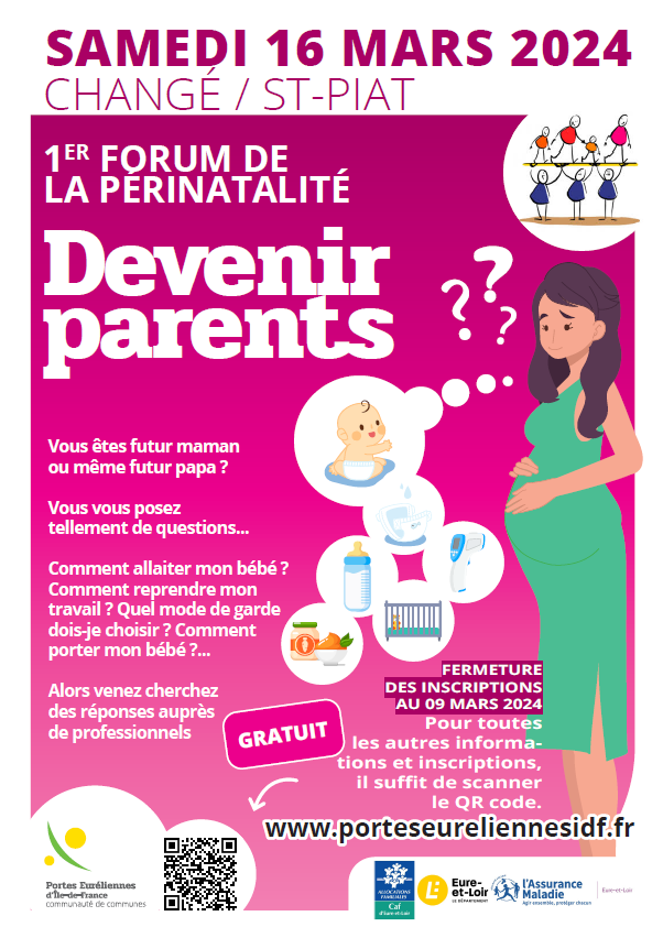 Le Relais petite enfance « Le blé en herbe » de Pierres organise un forum sur la périnatalité « Devenir parents » le samedi 16 mars de 9h à13h à Saint-Piat. Au programme : tables rondes (sur inscription uniquement), ateliers et points d’informations pratiques avec des partenaires : la Caisse Primaire d’Assurance Maladie d’Eure-et-Loir, la…