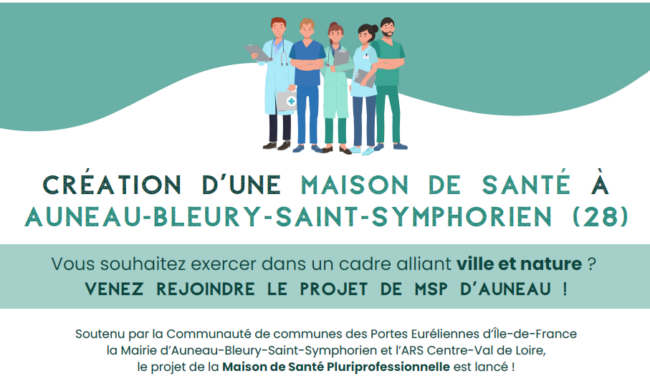 La maison de santé pluriprofessionnelle d’Auneau-Bleury-Saint-Symphorien recherche des professionnels de santé. L’équipe composée d’un médecin généraliste, de kinésithérapeutes, d’IDEL, d’ostéopathes, de chirurgiens-dentistes et d’un pharmacien est à la recherche de professionnels de santé et d’un médecin généraliste avec possibilité d’activité 100% libérale ou d’exercice partagé avec le CH Sud Essonne. Annonces Médecins MSP Auneau-Bleury-Saint-Symphorien Retrouvez…