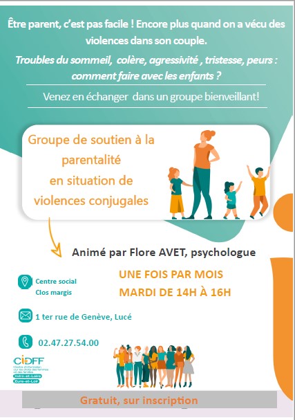 Retrouvez l’actualité du Centre d’information sur les droits des femmes (CIDFF) d’Eure-et-Loir qui propose des groupes de soutien animés par ses psychologues en direction des femmes victimes de violences conjugales. Groupe de soutien à la parentalité Être parent, c’est pas facile ! Encore plus quand on a vécu des violences dans son couple. Troubles du…