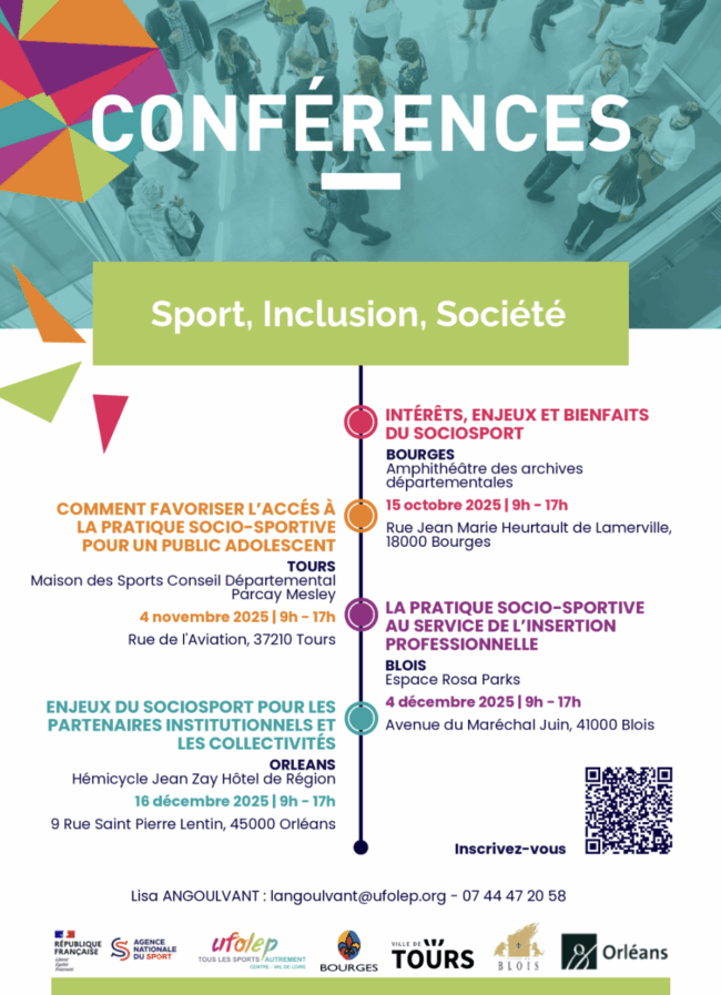 Dans le cadre de leur engagement pour une société plus inclusive par le sport, l’Ufolep a le plaisir de vous inviter à une série de conférences sur le socio sport organisées en région Centre-Val de Loire. Ces rencontres aborderont les enjeux, intérêts et bienfaits du socio sport, notamment : Son rôle dans l’insertion professionnelle, L’accès à la…