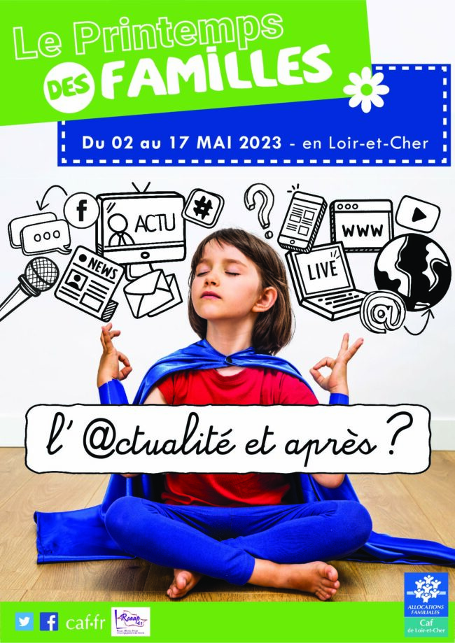 Le printemps des familles dans le Loir et Cher se déroulera du 2 au 17 juin 2023 Plein d’animations pour les familles sur le thème « L’actualité et après ? » A Blois, Vineuil, Vendôme, Romorantin et Lamotte Beuvron. Toutes les informations en ligne : https://41.kidiklik.fr/sorties-moment/304875-le-printemps-des-familles-plusieurs-sites-dans-le-loir-et-cher.html Affiche : Affiche printemps des familles 2023 – l’actualité et après Programme…