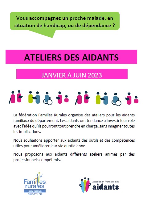 La Fédération Familles Rurales poursuit son engagement en faveur des proches aidants et leur proche aidé en organisant des ateliers et formations. Retrouvez la programmation en 2023. La Fédération Familles Rurales s’engage auprès des aidants et des personnes accompagnées. Ils ont chacun besoin d’être accompagné selon leurs besoins individuels mais également ensemble pour partager…