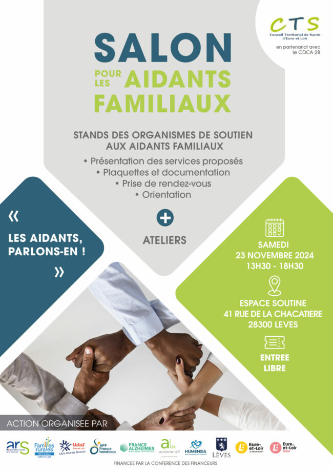 Le salon des aidants aura lieu le samedi 23 novembre 2024 de 13h30 à 18h30 à l’espace Soutine à Lèves. Stands des organismes de soutien aux aidants familiaux Des stands des organismes de soutien aux aidants familiaux seront présents pour répondre à toutes vos questions en tant qu’aidants de personnes atteintes de maladies chroniques, porteuse…