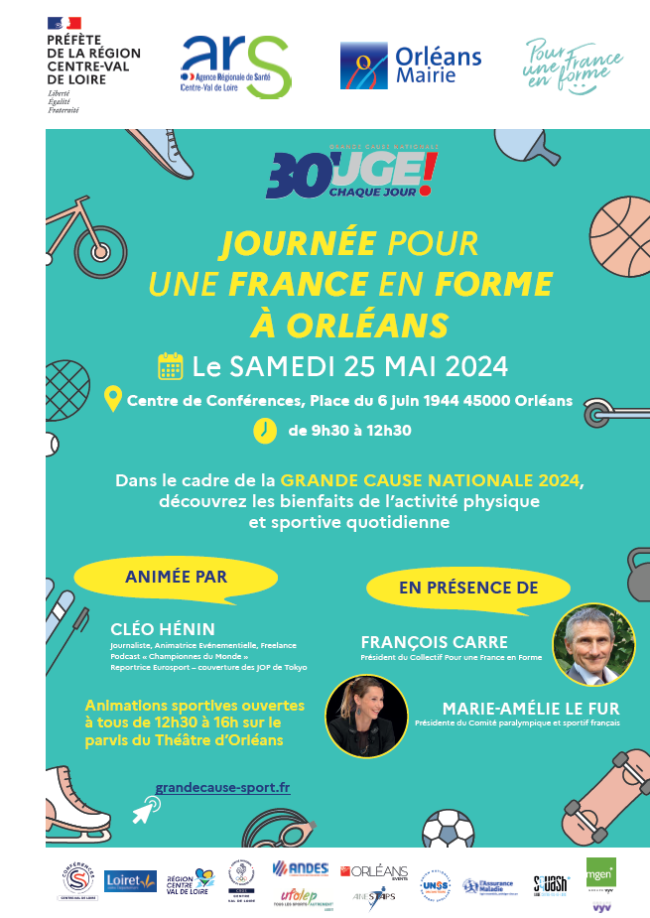 La Délégation régionale académique à la jeunesse, à l’engagement et aux sports (DRAJES) Centre-Val de Loire et l’Agence régionale de Santé (ARS) Centre-val de Loire organisent le 25 mai de 9h30 à 12h30 à Orléans la journée régionale « Pour une France en Forme ». Une conférence thématique sur la pratique d’activité physique et sportive (APS) et…