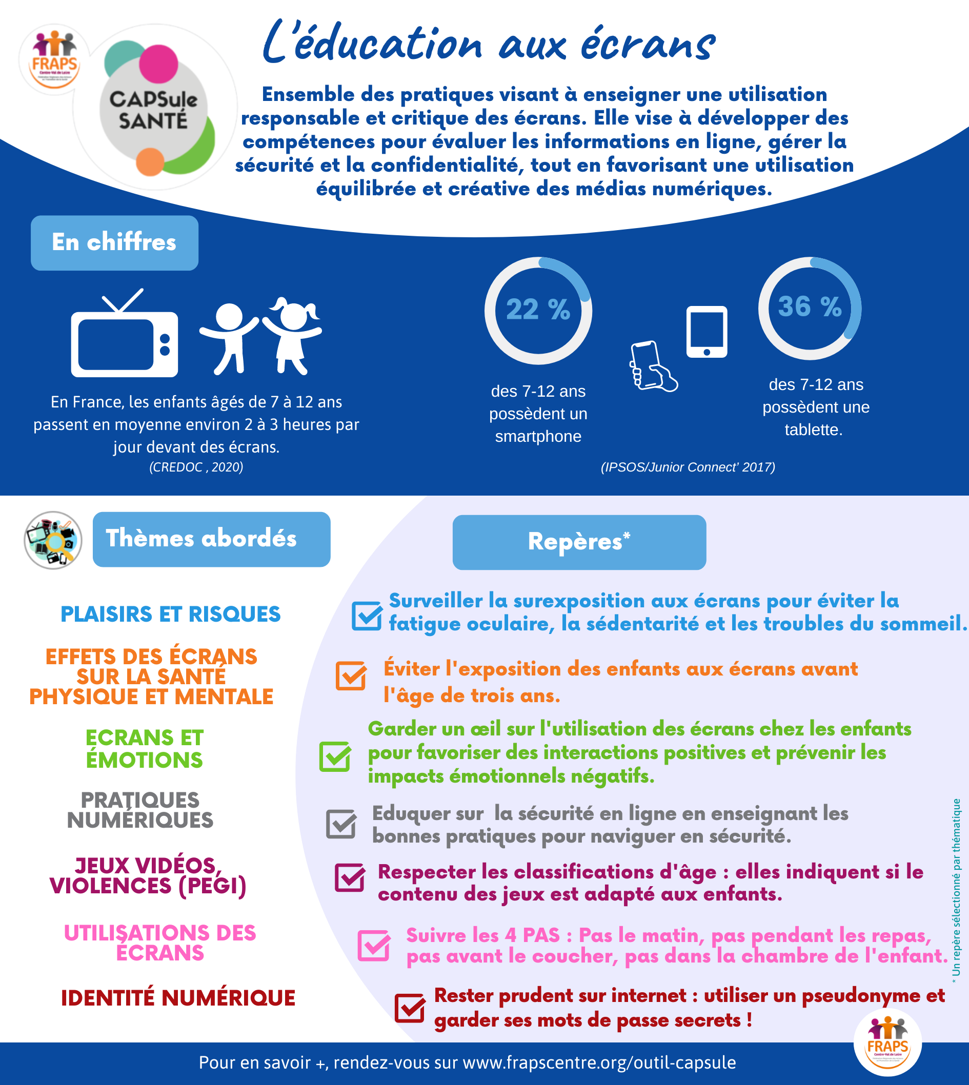 CAPSule Santé est partagé sous les termes de la Licence Creative Commons : pas d’utilisation commerciale, diffusion autorisée sans modification. Cliquez ici pour télécharger le classeur CAPSule Santé : l’éducation aux écrans
