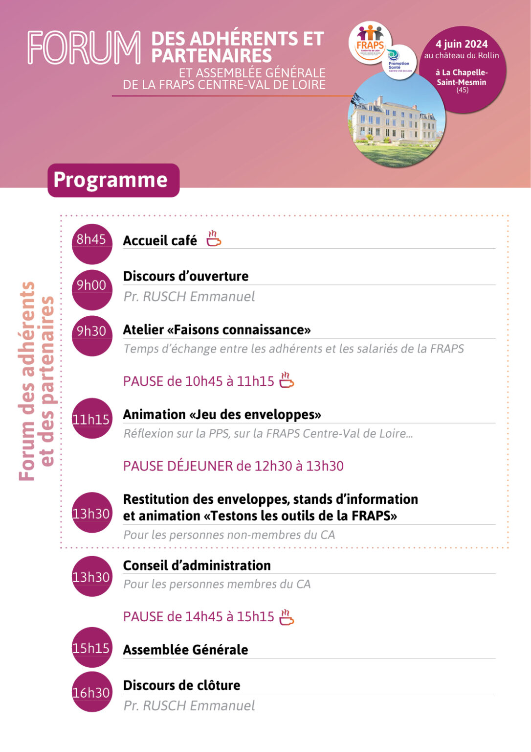 Le mardi 04 juin 2024 a eu lieu le forum des adhérents de la FRAPS Centre-Val de Loire.