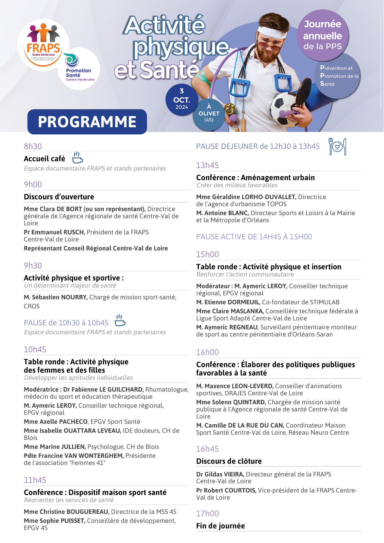 Journée annuelle de la PPS : Activités physique et Santé Le 03 octobre 2024 à l’Alliage – 1 rue Michel Roques 45160 OLIVET. Retour en images Visuels de l'événement Les présentations des intervenants