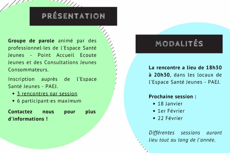 Pour rappel, ce groupe de parole animé par l’Espace Santé Jeunes – Point Accueil Ecoute…